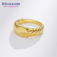 Blossom CS fabbrica di gioielli Custom sigillo incisione anello semplice 18k oro placcato 925 argento Sterling anelli per donna